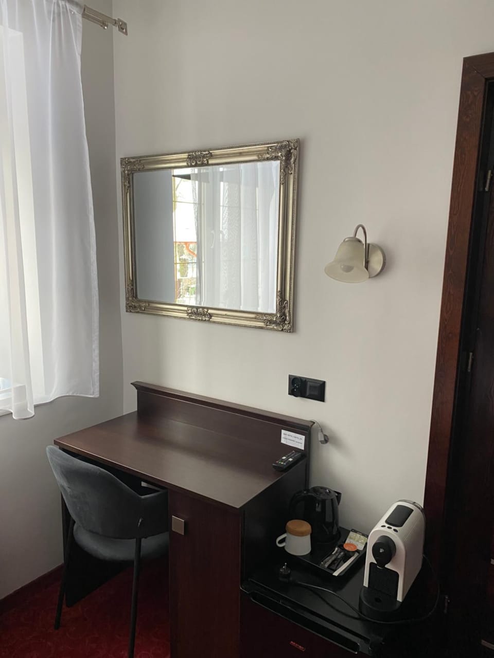 Wow, jestem w ogromnym pozytywnym szoku. Pokój czysty zadbany, na wyposażeniu z TV, lodówką, klimatyzacją, a nawet ekspresem kapsułkowym do kawy! Łazienka również czysta, zadbana, nawet z płynem do dezynfekcji rąk! WiFi działa bezbłędnie i są chyba 3 albo 4 sieci do których można się podłączyć. Hasło widoczne w pokoju, nie trzeba się o nie prosić. Myślałam, że może śniadania zaniżą ocenę, ale nie! Na śniadanie bogato zastawiony stół, 4 rodzaje pieczywa - świeżego. Masa dodatków, warzyw, wędlin, sera, serków, dżemów, nutelli. Nawet oliwa na stole się znalazła. Ale dla mnie królowa tego śniadania była jajecznica, pyszna maślana, idealnie ścięta duża porcja. W żadnym hotelu w Polsce nie jadłam tak dobrej jajecznicy jak tutaj. Lokalizacja pensjonatu również obłędna. 20 sekund marszu i dochodzimy do zamku, jeziora. 15 minut i jesteśmy przy kinie, a w 30 przy lidlu i innych punktach handlowych.