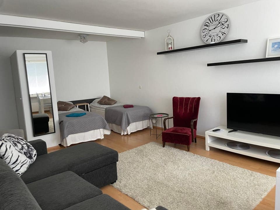 A modern, bright apartment with a kitchen equipped for basic cooking. Good bed and shower, washing machine. Easy self-check-in, free parking. Quiet neighborhood. Good price-quality ratio (in Finland at least).
