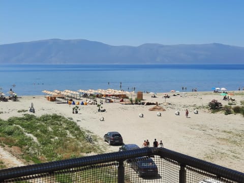 The location was perfect just on the beach and 5 min walking from the center , the beach was wide the water warm and clean. the view from the balcony was to directly to the sea it was breathtaking. The apartment is almost new and very clean(clean cheats, towels), it had everything you need, even more - air conditioning, complete kitchen with dishes and glasses, washing machine, elevator, toys for children etc.,