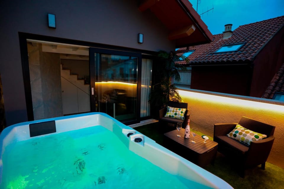 La ubicación de la casa esta muy bien, en pleno centro. La casa tiene varias plantas donde tienen habitaciones y cuartos de baño. Una terraza con el jacuzzi en la parte de arriba.