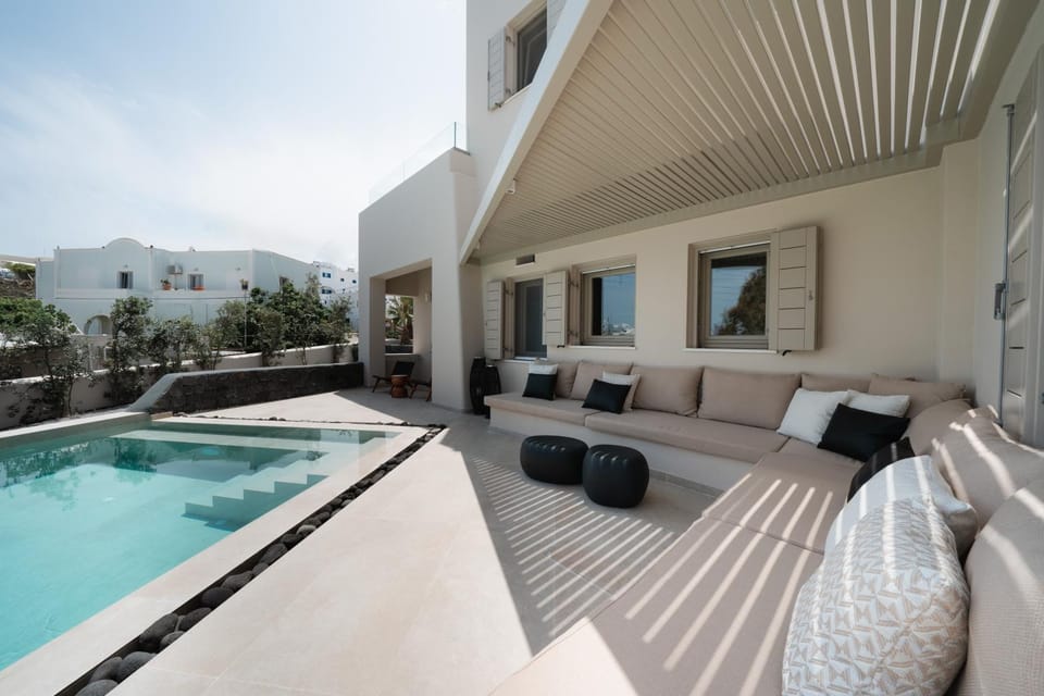 4 of us had a week’s stay at Casa Di Terra for my wife’s 50th birthday. We could not have stayed at a better place as the modern Villa is spacious, exceptionally clean and is run professionally. Fanourios was on site to welcome us on arrival and he was very helpful in recommending places and tours. There is ice cold air-con which suited our needs. There is a very nice swimming pool that is useable at night too with brilliant lighting. CASA Di Terra is only 1-2km from the airport and it is a very short walk away from the local supermarkets and other services. Taxis can be very expensive and the local buses are within only 3-5 minutes walk and they reach all areas of interest across Santorini.