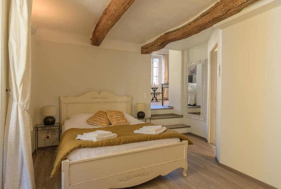Location is perfect, direct in to the main square of the small village. Valbone is a quite villa to stay for 3 days. Nice decoration and easy access, we have been 5 days and never had a problem to park our car in one of all of the free public spaces. Air conditioned is working perfectly and main bed is comfortable. Kitchen is well equipated. We got a room in the second floor and never listen the noise of the main square. Some simple table games in the apartment were really appreciated for our children.