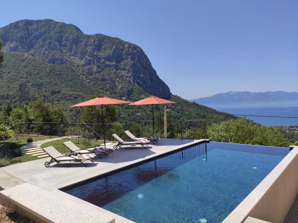 Villa located on the hill above village with outstanding view. Just us, house, pool, birds and great view on the sea below us.