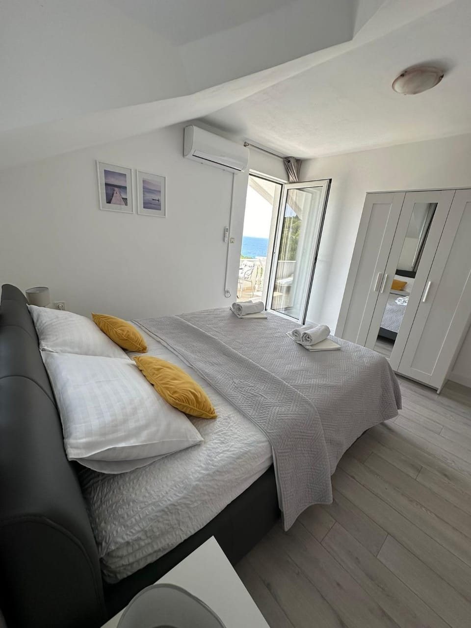 Dočekani smo od strane preljubazne gospođe i njenog sina. Apartman prostran i čist sa predivnom terasom sa pogledom na more.