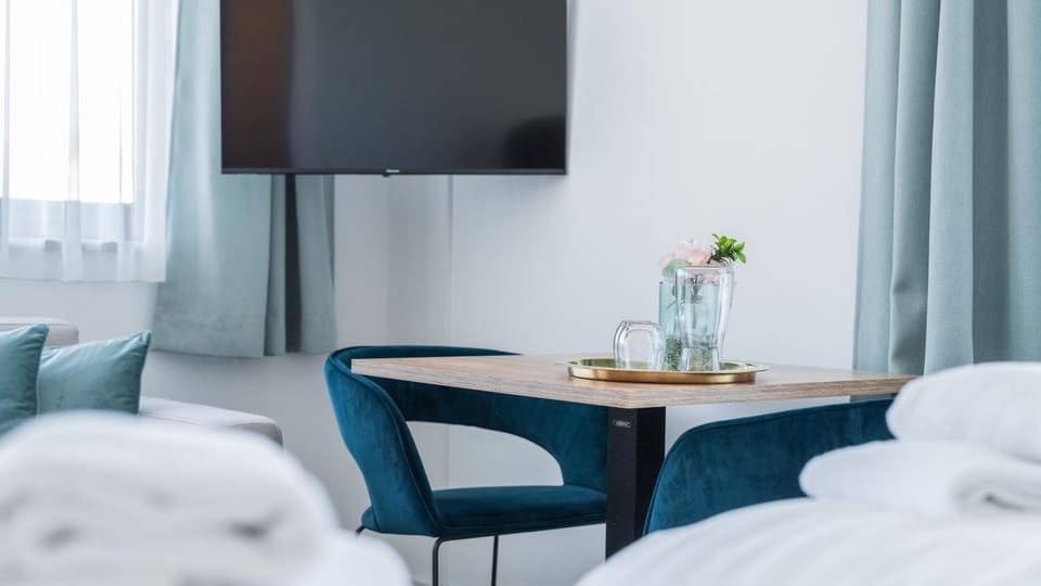 Bardzo uroczy hotel. Wystrój i organizacja tego miejsca bardzo nam się podobała. Smaczne, domowe śniadanie. Otoczenie i samo położenie hotelu świetne- na uboczu, zaciszne, ale dobra komunikacja do głównych dróg. Piękne widoki z klimatycznego apartamentu. Pokój nieduży, ale z dużym urokiem i nie potrzeba niczego więcej na krótki pobyt. Łazienka przestronna i świetnie wyposażona.