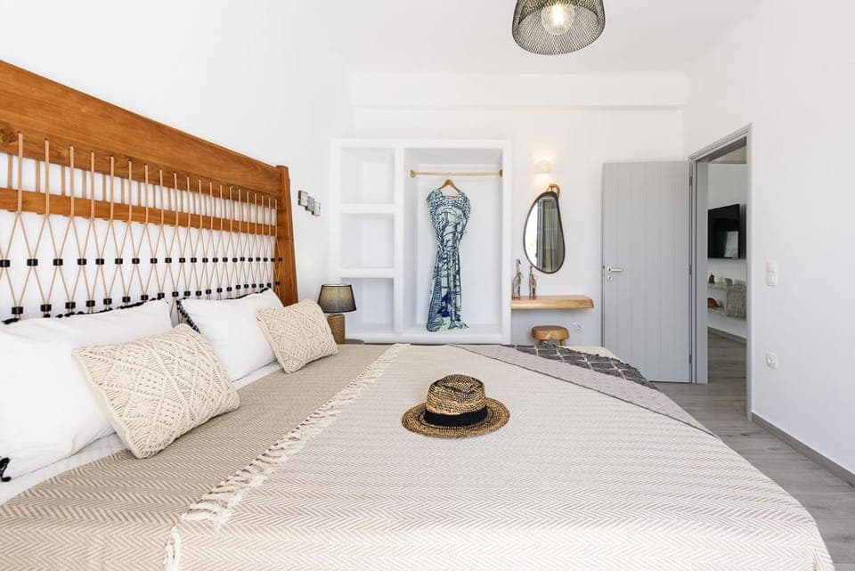 Modern, clean, walking distance from the beach and Naousa town, quite and beautiful neighborhood. The hosts are amazing, treated us like a family. They baked for my kids a scrumptious apple pie which we all loved so much. Convenient stores are very close and nice restaurants and bars of choice in abundance.