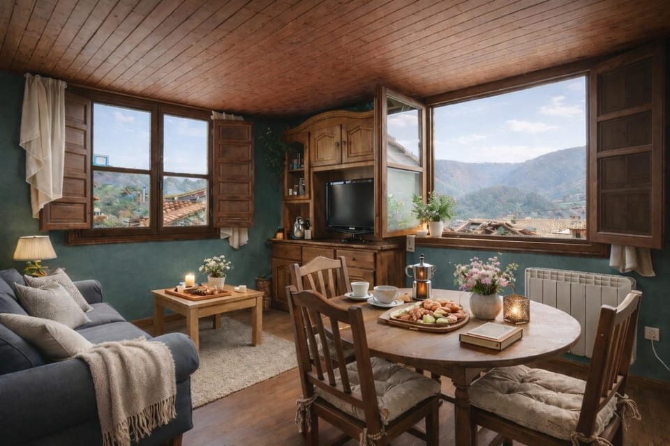 El apartamento se encuentra en un pueblo de ladera. Si bien es cierto que avisan del tipo de acceso empinado, destacaré que me pareció peligroso especialmente al llover, ya que las ruedas de un turismo/crossover tradicional no enganchan bien al pavimento y se corre el riesgo de derrapar. Ojo a las personas que viajen con mascotas, ya que nos encontramos varios mastines sueltos con los que corrimos algún apuro, algo esperable al viajar a un pueblo vaya, pero para evitar disgustos. Del alojamiento mejoraría las camas y almohadas. No ponen sábanas superiores, sino que se usa la funda del nórdico.