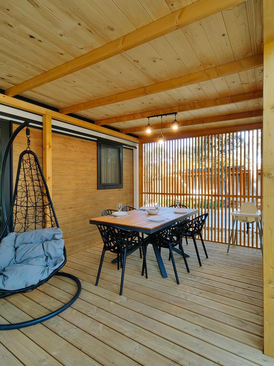 Sama mobilna hiška ima ogromno teraso in velik plinski žar.