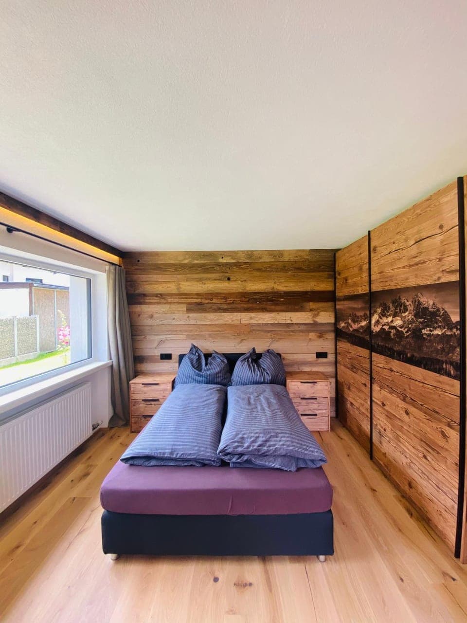 The apartment is very new and has this unique wooden interior that makes it look very cozy. You can enjoy the view of Wilder Kaiser right in front of the apartment and watch it change as the weather changes. The bed was comfortable and the bathroom was well equipped. So was the kitchen and the living room that has a huge TV. There is a nice terrace and an attatched garden. The apartment is located on main road and is 10-12 minutes walk from the centre of Sankt Johann and 10 minutes walk from the shopping center in Sankt Johann West.