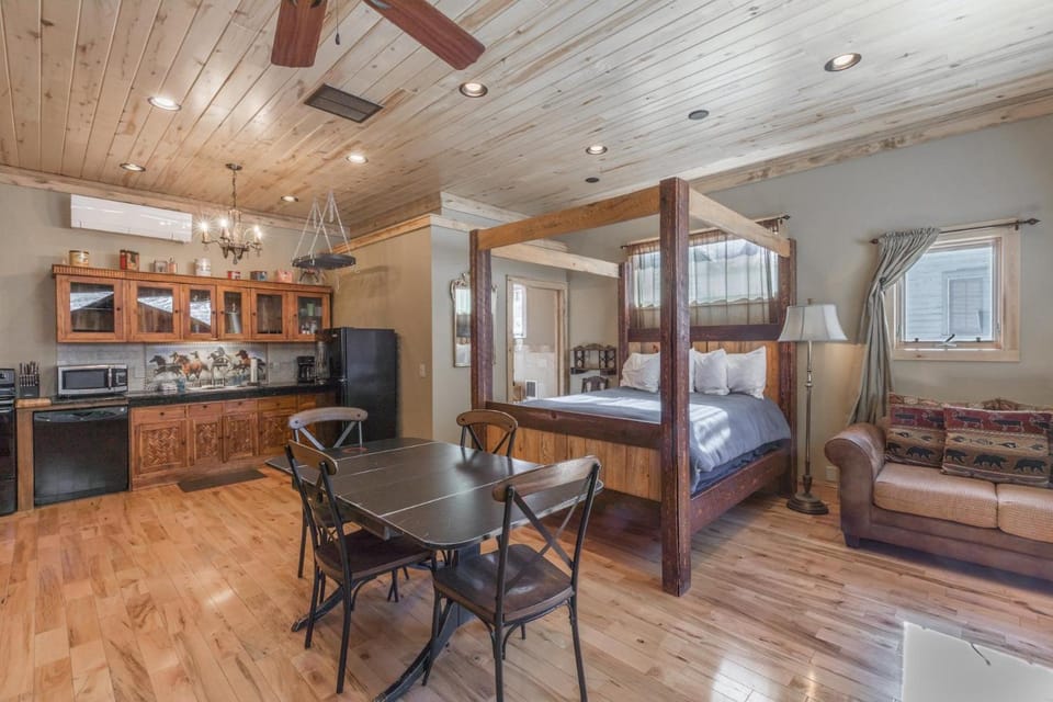 cute little cabin feel. liked the deep bath which was pretty cool. comfortable and warm bed. Liked being able to have own parting spot away from Main Street. Was a perfect distance from Main Street.