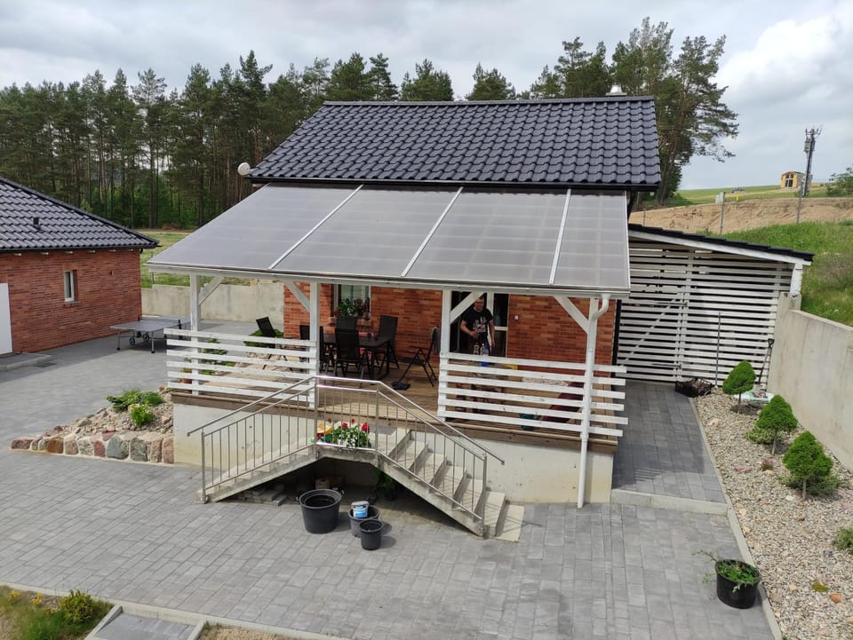 Rewelacyjne miejsce do odpoczynku. Byliśmy z dziećmi, które nie miały czasu się nudzić. Pogoda w większości dopisała i wtedy basen, jezioro, boisko, hulajnogi, mecze tenisa stołowego, trampolina, piaskownica... Naprawdę brawo dla gospodarzy za stworzenie tak świetnego miejsca! Dom jest wygodny i dobrze wyposażony. Jedynym mankamentem jest brak szaf aż w trzech sypialniach. W dwóch są półki, w jednej tylko wieszak, trochę było to uciążliwe. Niestety nie ma zasięgu z Plusa , tym samym brak też internetu (ale żeby zadzwonić wystarczy przejść się na pomost pobliskiego jeziora, które jest ciche, spokojne i czasami było tylko do naszej dyspozycji z rowerkami wodnymi i kajakami.) Teren jest bezpieczny, ogrodzony z wystarczającą ilością miejsc do parkowania. Do dyspozycji są też rowery i świetlica z telewizorem i miejscem na zabawę. Bardzo dziękujemy za powitalny prezent w postaci owoców i wina.