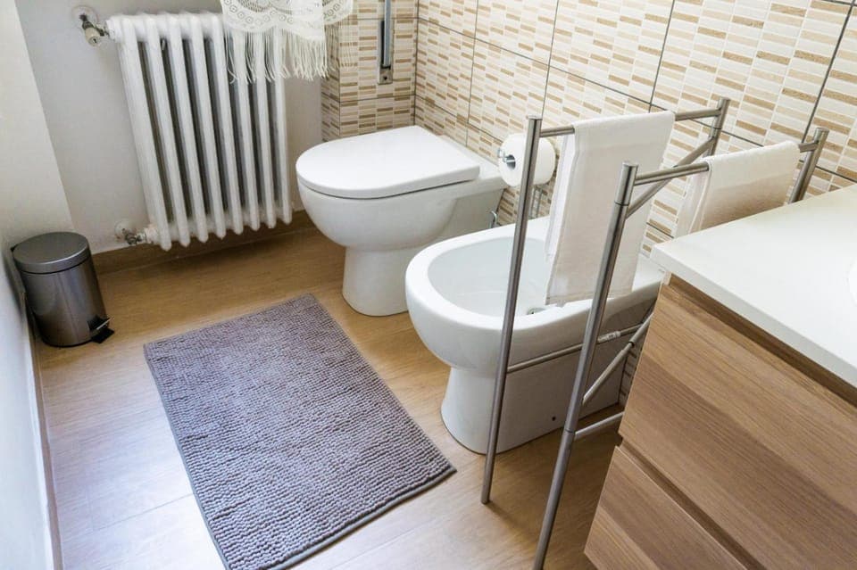Il bagno è nuovo, ma gli spazi sono un po' stretti, inoltre gira pochissima aria perché la finestra affaccia su un cortile interno molto piccolo e chiuso (e su finestre di altre case)