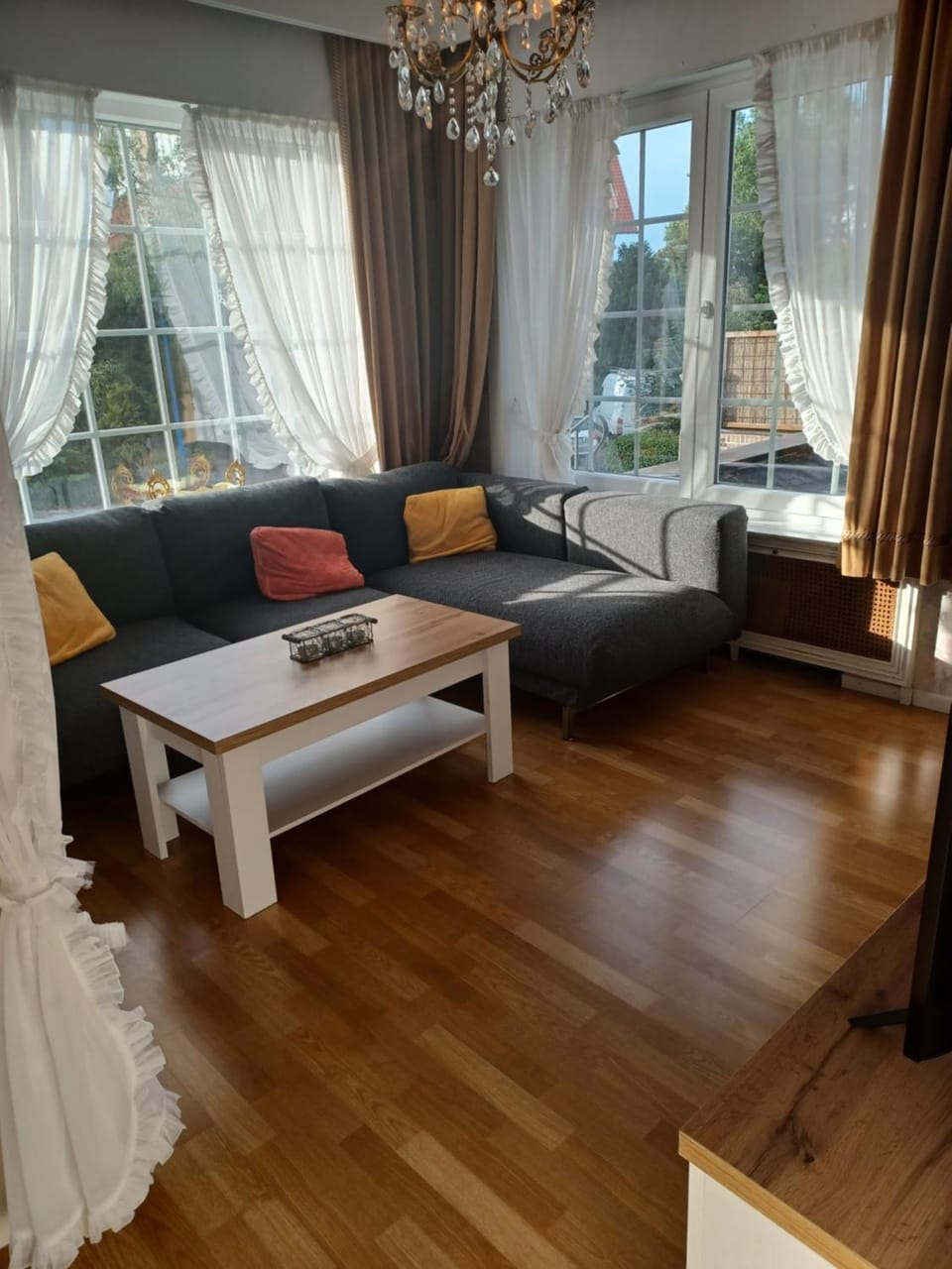 Perfect location, great with free parking. A lot of space and comfortable all around