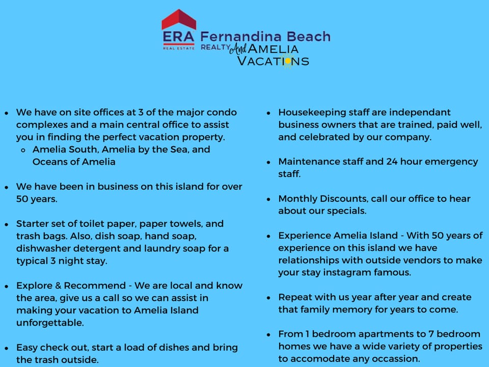 Amenities at Oceanfront condo sleeps 6, kid-friendly elegance in Fernandina