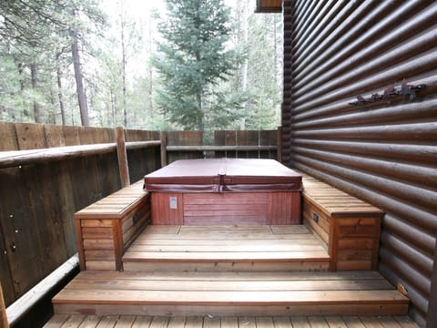 Access to the private hot tub area is from downstairs, at the rear of the home.