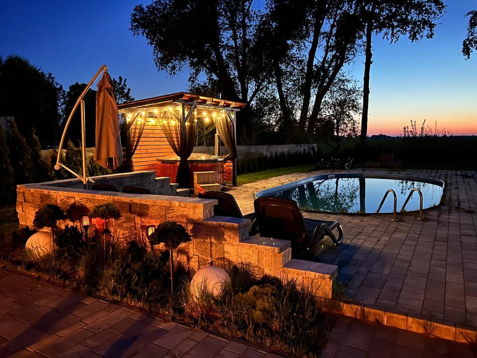 Cudowne,klimatyczne i wspaniałe miejsce. Już mamy zarezerwowany kolejny pobyt. Prywatność, intymność,za płotem stado koni. Piękny domek,cudowny basen i pięknie zorganizowane podwórko z trampolina i placem zabaw.