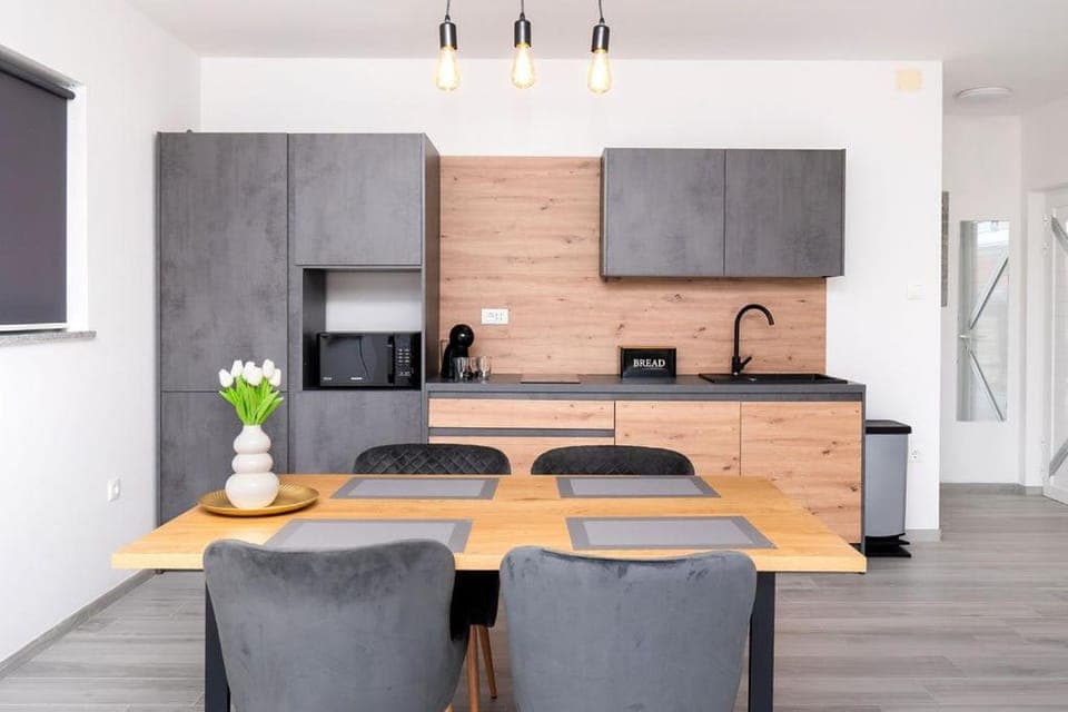 V apartmáne chýba mikrovlnka, takže nie je možné si uvarit jedlo na viac dní. Takisto makšia matrac ,hrozne ma bolel chrbat , ale pre zdraveho cloveka to problem nebude. Čo sa týka polohy apartmánu bolo tazke ho nájst podľa GPS. Takisto daleko od centra Šibenika ,peši cca 30 minút, ja som s tým problém nemala trafiť do mesta , ale pre niekoho co nema orientaciu tak to peši bude problém hlavne v noci. Šibenik sme zvolili z núdze,keďže narýchlo sme sa rozhodli pre dovolenku a v Primoštene voľný apartman nebol. Chodili sme denne tam na pláž zhruba 30 min jazdy autom nakoľko v Šibeniku je len malá mestská pláž.