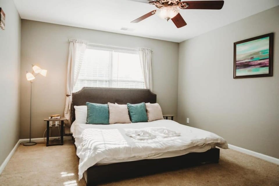 Great space however cleanliness of entire home would prevent recommending or another stay. Water stains on bathroom floor, pet stains on carpet floors, microwave tray missing. House smell was unpleasant. Numerous outlets not working, no lights work in stairway and garage door is manual only.