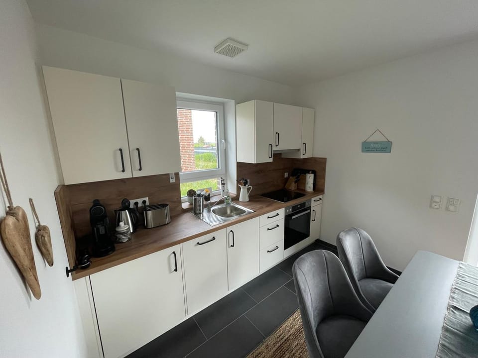 Schickes Ferienhaus mit hochwertiger Ausstattung in schöner Umgebung. Beide Schlafzimmer mit neuen bequemen Boxspringbetten, geeignet für Kinder und Erwachsene. Geräumige Fahrradgarage vorhanden. Auf der Terasse läd ein Strandkorb zum Verweilen ein.