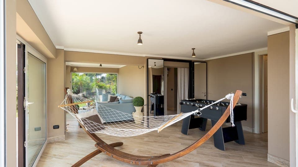 Making full use of its elevated hillside position, this villa is built tall across three floors and two levels of terraces. Windows line the walls that face out across the wide-open plains of Versilia with its patchwork of sparkling lakes, woodlands and terracotta-tiled towns. Nearby wooded hillsides lead your eye out to the distant mountains rising beyond. Whether you’re swimming in the infinity pool, lounging on the outdoor sofas or gazing out of the panoramic windows, this mesmerising view greets you from all angles. Inside, you’ll find bright and breezy living areas with a feminine feel – think floats of white chiffon, expanses of champagne marble, and white linen curtains fluttering in the breeze. Gardens and patio areas surround the villa, with discreet hedge screens making it feel private despite its neighbours. The large heated whirlpool hot tub is elevated above the swimming pool and backed by a lounge area – perfect for socialising with your whole group. Planted with roses and Mediterranean herbs, the garden's scents combine with the views to stir up all the senses.
