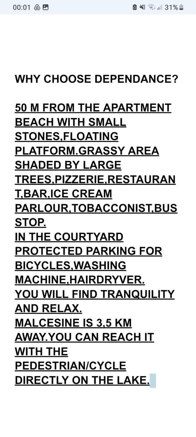 Dependance is located in Malcesine, just 1.3 miles from Spiaggia Acquafresca and 24 miles from Gardaland. Among the facilities at this property are private check-in and check-out and bicycle parking, along with free Wifi throughout the property.