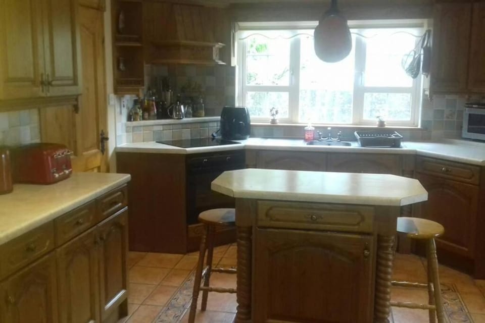 Good size home, 4 bedrooms upstairs 1 bedroom with en suite downstairs. Everything you need air fryers extra blankets and pillows. Beautiful gardens and a piano my dad played music for us all. So near the town on a fab quite road. welcome biscuits and tea coffee and milk for us. Clean and cozy home 🏡