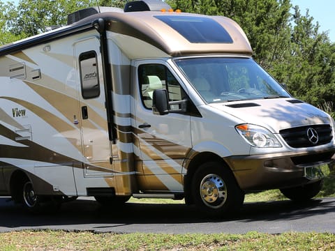 This Mercedes Winnebago View Profile 24V is Equipped with a V6 Diesel engine, a slide out (living room and back bedroom) accordion cab blinds throughout for privacy, a large power skylight provides ceiling ventilation and and full body paint making it one of the finest motorhomes on the road. It is fully equipped, easy to drive and has excellent fuel economy avg 14+mpg hi-way. Integrated back-up camera allows for easy maneuverability in parking lots and campgrounds.