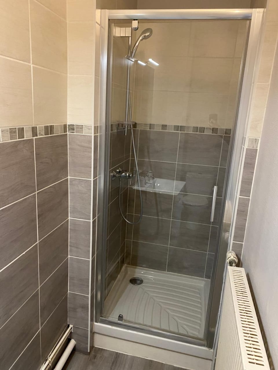 Entrée de douche nécessitant de se faufiler mais propreté, pression et écoulement parfaits