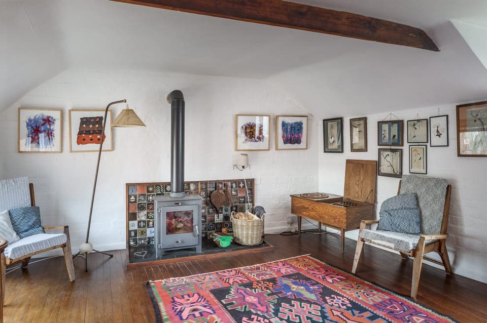 This unique home was a bakery in the 1950s but it was converted by the host's parents, who both worked at the Lincoln School of Art. As well as being a day job, they also had a strong interest in artistic endeavours and they filled the interior with hand-crafted ceramics, fabrics and paintings. Today, much of their collection remains and it lends the feel of part-museum, part-period home — especially with the hardwood floors and wood-burning fireplace. The large garden is equally special too, with a pond full of frogs and plenty of lawn space on which to lie back with a book borrowed from the packed shelves in the dining room. When you fancy exploring your surroundings, the city of Lincoln is thirteen minutes away in the car, while the Lincolnshire Wolds Area of Outstanding Natural Beauty can be reached in just over twenty. Closer to home, there's a pub two minutes' walk around the corner.