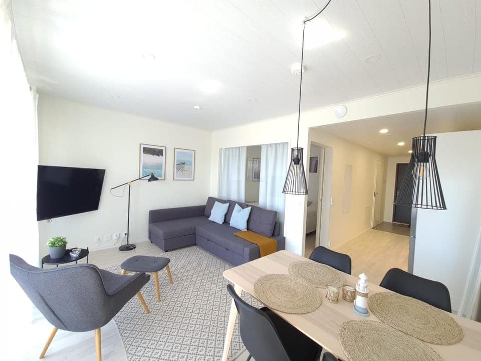 Tosi kiva ja kauniisti sisustettu asunto keskeisellä paikalla. Terassi on kaunis.