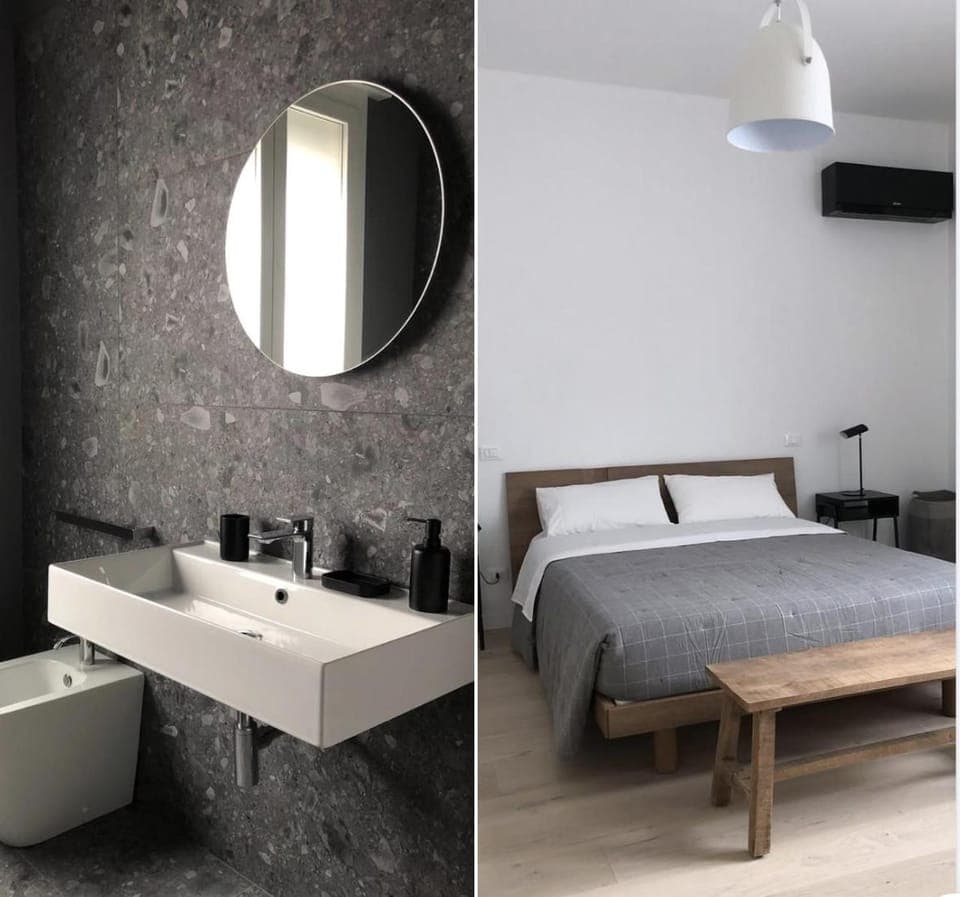 Stanza pulitissima, moderna e spaziosa. Bagno bellissimo con doccia grandissima e tutto il necessario. Pur non essendo un b&b con cucina la camera è dotata di un mini frigo e di una colazione ogni mattina con paste imbustate (a parer mio buonissime) e una macchinetta con capsule di caffè che ricaricano ogni mattina. Un'altra cosa che mi è piaciuta tantissimo il certificato di acqua potabile dei rubinetti, che inoltre scorreva freschissima. Aria condizionata e luminosità, inoltre il proprietario gentilissimo. Possibilità di parcheggiare proprio sotto la struttura a 7€ al giorno. Sicuramente un'esperienza positiva ci tornerò 👍