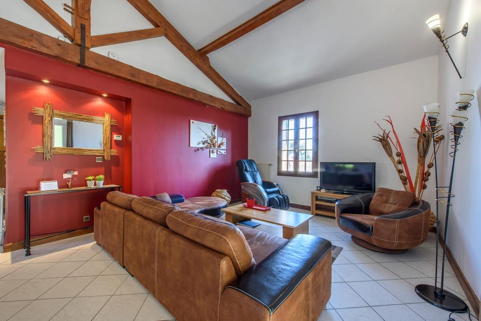 Fijn groot appartement op de 1e verdieping van huis eigenaar. Eigen opgang en overdekt terras. Ruim huis, goed voorzien van alles wat je nodig hebt. Op 10 min. lopen de bakker, suup etc. Wij gingen met de auto naar lyon, ca. 20 minuten rijden.