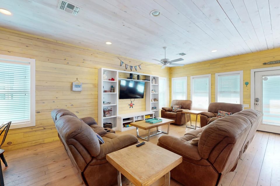 Enjoy the best of Port Aransas in our House, Shared Heated Pool, Garage Access, Pet Friendly, Golf Cart Access. A stunning property with amenities including Air conditioning, Dryer and WiFi/Internet, and more.