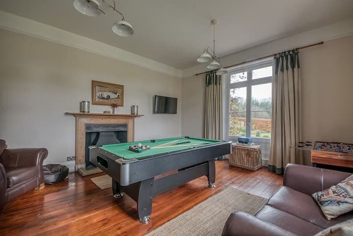 Out in the unspoiled countryside of Cranborne Chase AONB, this Victorian house sits in red-brick splendour. It’s a five-minute drive into the centre of Blandford Forum, a charming town to stock up on groceries and perhaps pause for a cup of coffee. Though there’s plenty to keep you busy on the estate as well – wander between the grapevines of the small vineyard, or head to the private tennis court. There’s over 30 acres of woodland walks to explore too. Within an acre of private garden, this home has its own heated swimming pool, hot tub for six, gas barbecue and croquet lawn. But, if the weather isn’t on your side, you can always while away the days in the games room. Two living rooms and a conservatory offer the group plenty of space to spread out, and you’ll have the choice between a cosy crackling wood-burner or streaming sunshine from glass walls. You can still picture scullery maids bustling around in the country-chic kitchen. In keeping with the Victorian grandeur of the home, bedrooms are a plush medley of chandeliers, silk curtains and four-poster beds and the master comes with a beautiful claw-foot tub.