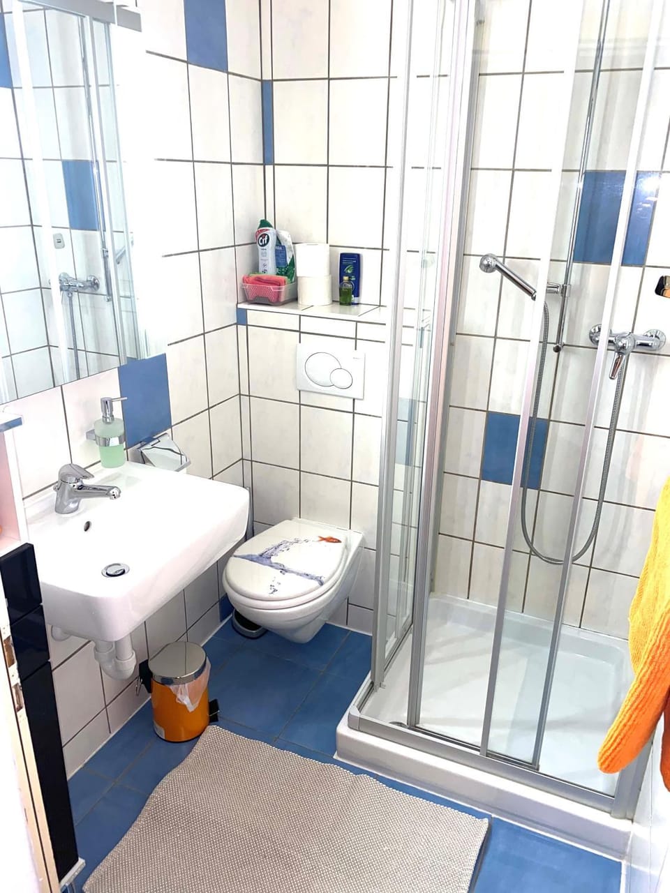 Dusche und WC sind gleich bei der Eingangstür. Enge Verhältnisse beim Klo.