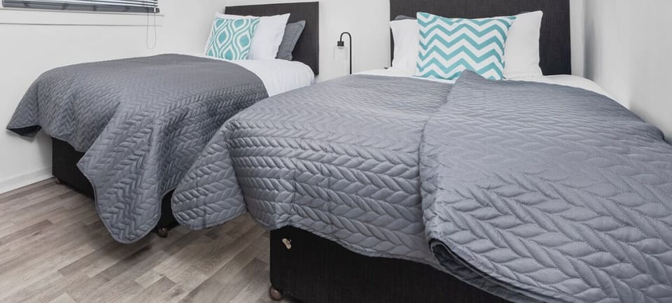 3 double bedrooms with zip link beds. Can be set up as 3 super king beds or 6 single beds
