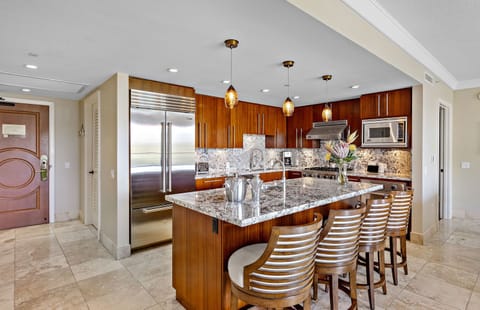 The generous combined 3000+ sq ft square foot of interior living area provides ample room for family and friends to gather and reconnect. 500+ sq ft of combined balcony space offers more room to soak up the gorgeous Maui outdoors and take in the direct ocean views.