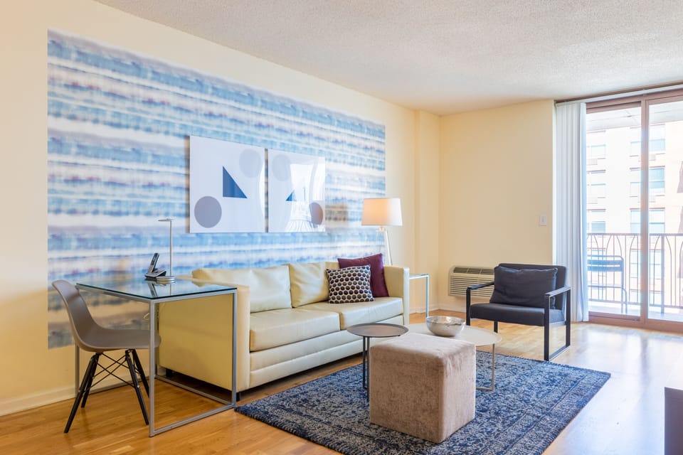 This apartment is professionally managed by Furnished Quarters, the largest independently owned and operated supplier of short-term furnished housing with over 25 years of experience in the industry. 333 River Street provides the convenience of upscale metropolitan living without the hustle and bustle of New York City. Live amidst Hoboken's best nightlife, restaurants, cafs and galleries. Easy access to Manhattan is provided through the nearby PATH station and NY Waterway ferry station.This upscale one-bedroom apartment features an in-unit washer and dryer, a fully equipped kitchen with granite countertops, ample closet space, ample closet space, and a private balcony accessible from the living room. Building amenities include a full-service doorman, a fitness center, two children's play centers and a pet-friendly environment. All beds provided are fitted with plush linen sheets and pillows. All Furnished Quarters apartments include 24/7 guest service. Pets are allowed in select apartments and are subject to a $500 non-refundable pet sanitation fee for one pet, $750 for two pets. Additional charges and size/breed restrictions may apply and vary by building. All pets must be approved by Furnished Quarters. Please let us know ahead of booking if you plan on traveling with a pet.