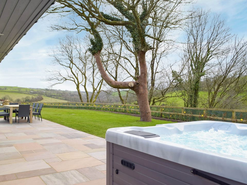 Bedroom 4: 2 x Single (3ft) Beds Ensuite: Bath With Shower Over, Heated Towel Rail, Toilet. Air source underfloor heating, electricity, bed linen, towels, Wi-Fi and logs for wood burner included. Travel cot, highchair and stairgate available on request. Welcome pack. Lawned garden with patio, garden furniture and barbecue. 5-acre grounds. Hot tub for 6 (private). External play room. Bike store. Private parking for 4 cars. No smoking. Please note: There is a river on the boundary of the grounds.. Cwm Hyfryd (meaning ‘a beautiful valley’ in Welsh) was once a derelict barn nestled within a wooded valley, with commanding picture postcard views out over the rolling Carmarthenshire countryside.