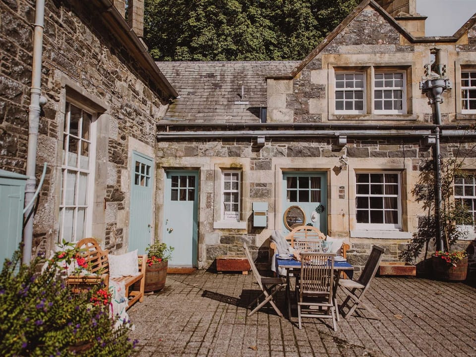 Bedroom 2: 2 x Single (3ft) Beds. Oil central heating, electricity, bed linen, towels and Wi-Fi included. Initial logs for wood burner included. . Patio with garden furniture. Private parking for 2 cars. No smoking.. Revealing a fascinating glimpse into its ancient stables heritage, Coachman sits at the heart of the courtyard within a rural idyll, binding a classically Grade II listed exterior with rustic interiors. It features original wood panelled walls and chimneys and two bathrooms. The living room boasts original features from the turn of the century, including original oak panelling, and lovely fireplace. Streaming light from the window and door glass panels also provides views of the woodlands, framed by abundant hydrangea blooms. Indian-blue velvet sofas with gold accents and a highly curated selection of fine arts provide a boutique feel. The kitchen has been restored from its original form, and you’ll find fascinating nooks and crannies for storage within the original range which has stood in its place since the 1900s.