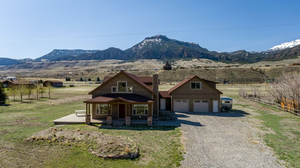 Welcome to Wapiti Valley Wayfarer! This beautiful home is located in the heart of Wapiti Valley with gorgeous 360-degree views. The main house has two bedrooms and two bathrooms. The third bedroom and bathroom are found in the apartment above the garage. The main house and apartment are rented together which can be perfect for travelling with extended family or friends. Winter & Spring Travel Notice: Cody offers plenty to enjoy year-round! Please note that Yellowstone's East Entrance and most park roads are closed to regular vehicle traffic from November 1, 2025 through May 1, 2026. During winter (December 15–mid-March, weather permitting), access is available only by guided snowcoach or snowmobile tours.