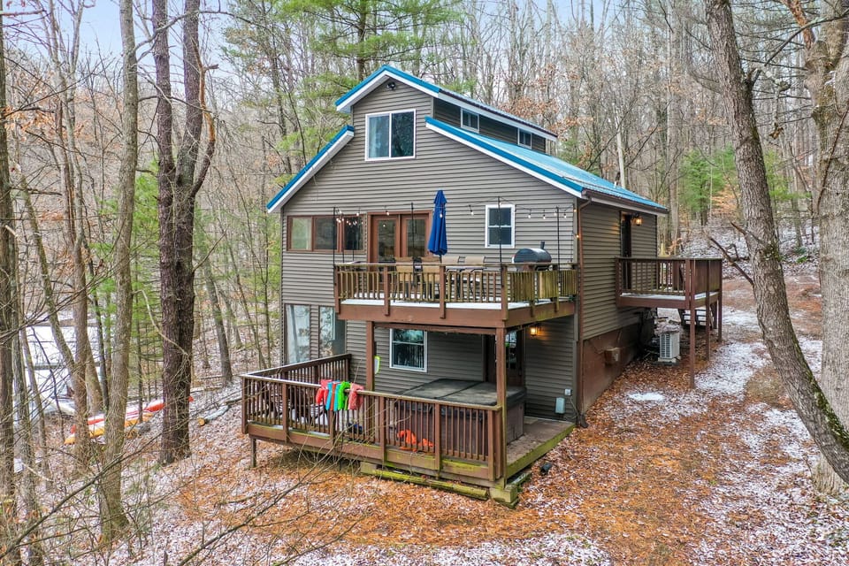 In the basement you will find the pool table room, with a bar table and chairs, pool table, Roku smart tv and games. Off of the pool table room there is the lower deck with the hot tub and a sunroom sitting area. Looking to enjoy the outdoors, we have a fire pit area with bench seating, a private dock, 2 kayaks and canoe. Want to stay connected during your stay, there is wifi and a landline phone available. Dish and hand soap are provided and the washer and dryer are available for guest use.