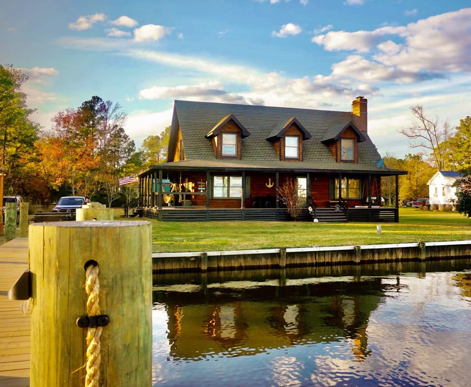 This modern 1,953 sq ft waterfront cabin offers a peaceful retreat for families and couples looking to relax near the Outer Banks. Enjoy stunning sound views, quiet surroundings, and direct access to fishing, crabbing, kayaking, and wildlife watching right from your backyard.