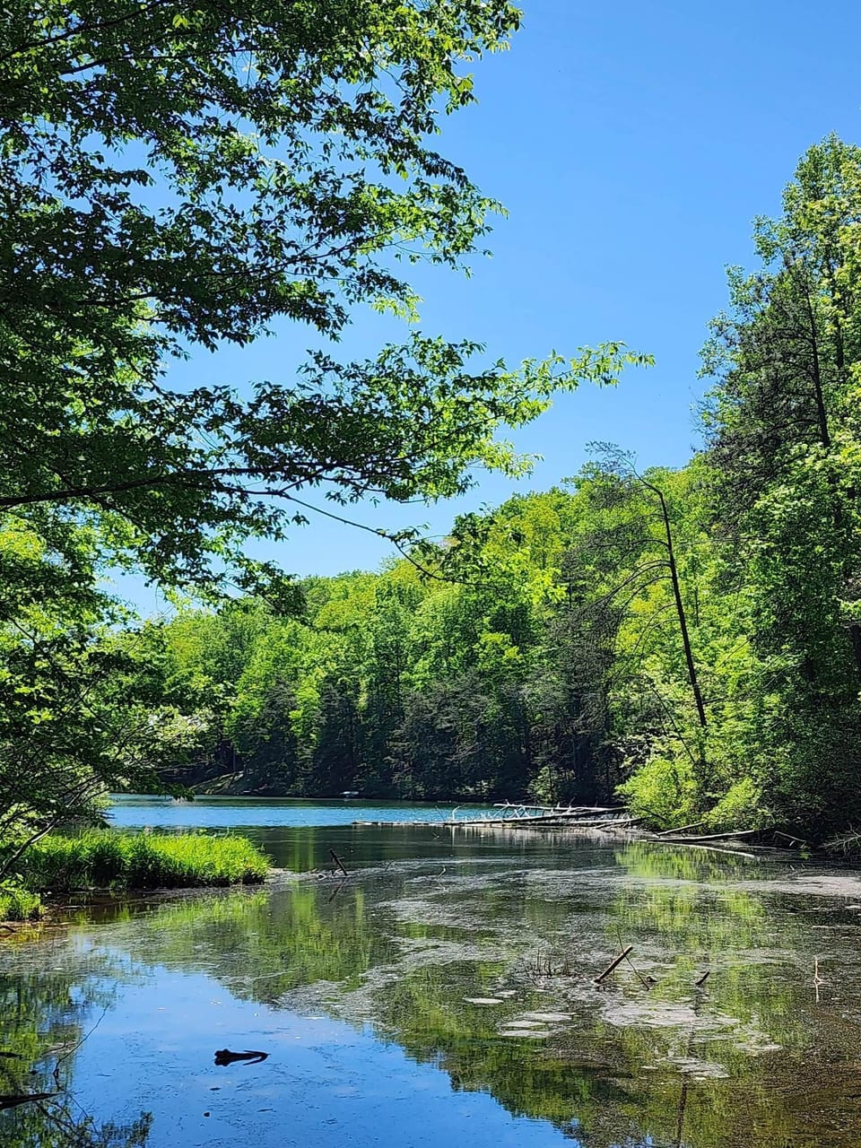 Log Cabin peacefully situated in gated mountain community in the Riverbend of Lake Lure in Blue Ridge Mountains. Cabin is on Mirror Lake with wood burning fireplace, firewood, firepit and canoe available! Sleeps up to 10 with FOUR private bedrooms and loft with queen futon sleeper. Access to private lakes, beach and river. minutes away from cabin. Minutes to Lake Lure and Chimney Rock. Walk to lake in back yard with private pier. 4 bedrooms/2 full baths with wood burning fireplace and small lake view. This cabin is a fantastic mountain home in a fully wooded peaceful area located inside Riverbend. This is a true log cabin with a real mountain feel. When you walk in, you see a welcoming kitchen/dining area and the main level living room. a log burning fireplace, Wi-Fi, and a flat-screen TV. The dining room seats 6. This property offers a well-appointed, functional kitchen. The main level features a master bedroom with a queen bed and adjoining bathroom which is also accessible from the main living area. Upstairs you’ll find a bedroom with a king sized bed overlooking the great room with a flatscreen TV. The lower level offers another bedroom with a Queen and twin Bunk Bed and a full bath.