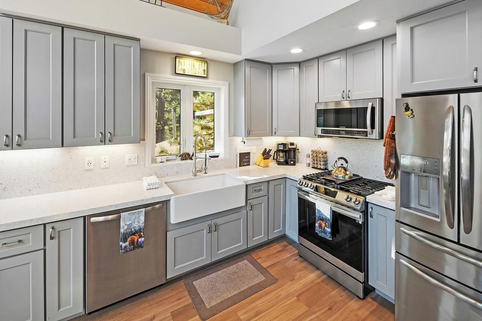 ✓ Gas Oven/Range, Microwave, Dishwasher, Coffee Maker & Farmhouse Sink