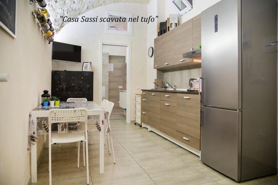 Struttura ristrutturata con spazi ben distribuiti e dotati di tutto il necessario in ogni ambiente, ben areato nonostante la mancanza di finestre per via della ubicazione in un seminterrato in una zona tranquilla e con parcheggio facilmente reperibile anche libero a circa 15/20 minuti a piedi dai sassi.