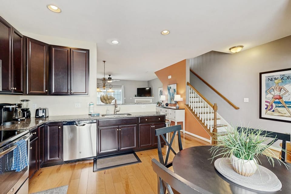 The house was freezing downstairs and hot upstairs. The kitchen drawers were not wiped down when we got there and since we didn't use the kitchen I didn't clean. My daughter also found a large coffee spill upstairs which she cleaned in the bedroom. The advantage of a house has disadvantages when you want to get to the beach to find a space, the amount of money you pay for parking, the inconvenience of driving back and forth after the beach. When you stay in town you can spend extra time on the beach, walk to your hotel, save money on parking and spend more time in town because you are right there. When you drive over together you have to worry about what other people want to do - we all have to leave together. If you stay in town everyone can do their own thing. Staying out of town was really inconvenient- never did it before. We won't do it again.