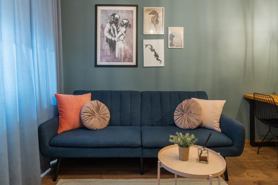The place was fantastic! Decorated with taste, even if it wasn't new, it was very cozy. We had everything we needed. There was enough space. Finally a place with good thick curtains, so we didn't need to wake up with the sunrise. There was an airco in every room, a must in the heat. The host helped us find a garage nearby, which in the center of Varna was a very convenient and a much cheaper option. Against a payment we could have our furry friend with us.