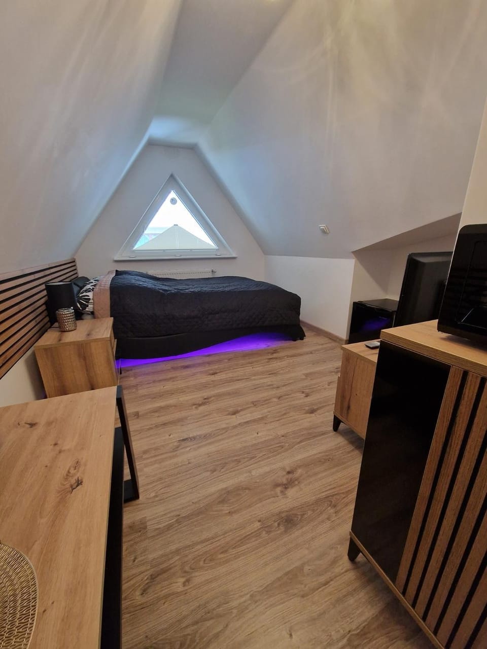 Mały pokoik ale bardzo ładnie i praktycznie urządzony , duże wygodne łóżko , poduszki też bardzo wygodne 😄 . Łazienka czysta i duża . Bardzo blisko morza , w koło dużo restauracji i sklepików .
