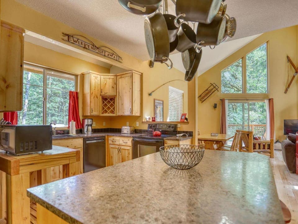 Are you ready to indulge in a relaxing getaway? Our House in Welches has everything you need for a rejuvenating stay. Treat yourself to Classic riverfront home w/ great views, game room, hot tub, & modern cabin feel's exceptional amenities, such as No pets allowed, Family friendly and Non-smoking.